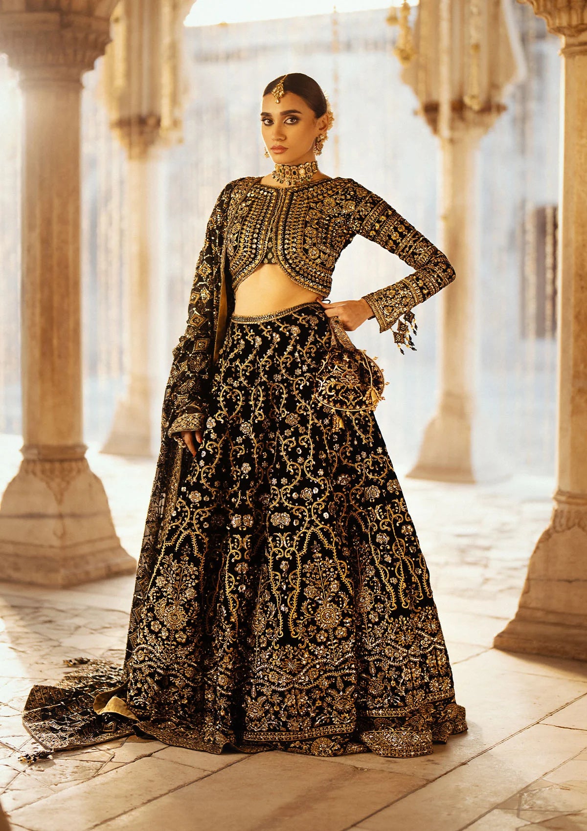 Product Details: Shirt: Embroidered Velvet Front and Back Bodice Embroidered Organza Neckline Finishing Embroidered Velvet Sleeves Embroidered Medium Silk Sleeves Border Lehnga: Embroidered Velvet Front Panels Embroidered Velvet Back Panels Embroidered Medium Silk Front and Back Border Dupatta: Embroidered Chiffon Dupatta...